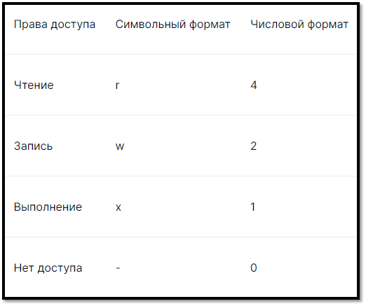 Существуют два основных способа записи прав доступа: символьный и числовой формат. Символьный формат использует читаемые буквы и символы для представления прав доступа, в то время как числовой формат использует числа в восьмеричной системе.