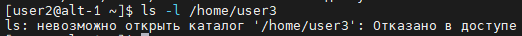 Мы получаем сообщение отказано в доступе, так как у членов группы user1 нет права на запись для домашней директории пользователя user1.