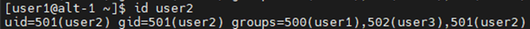 В выводе вы увидите все группы, к которым принадлежит user2: