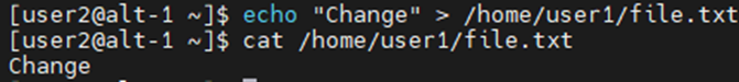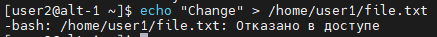 У вас должно было получиться, так как пользователи группы user1 имеют доступ на чтение. Давайте теперь попробуем изменить этот файл: