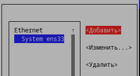 Далее нам нужно добавить интерфейс вручную, так как “System ens33” это интерфейс, созданный графической оболочкой на основе ens33, и мы можем им управлять только через приложение «Параметры системы».