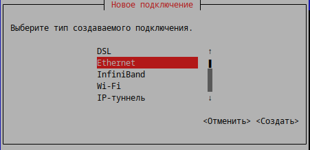 Далее выберте «Ethernet» и нажмите «Создать»: