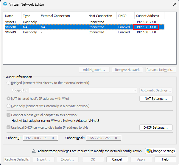 В моем случае это оказалась сеть 192.168.14.0/24: