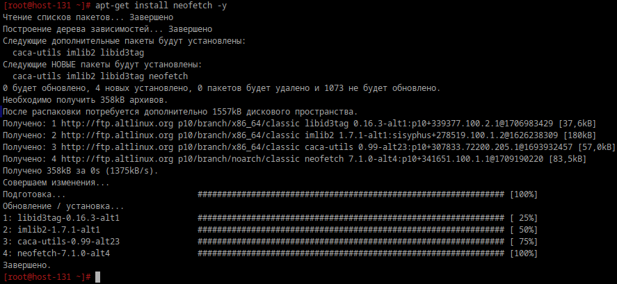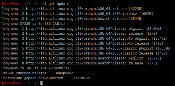 После завершения процесса установки авторизуйтесь под учетной записью user_cli1