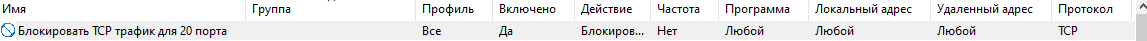 Аналогично создадим правило, которое будет блокировать весь UDP трафик для 21 порта.