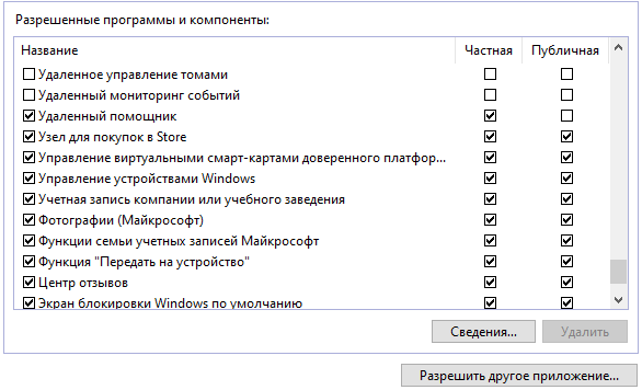 имеется галочка, это означает, что доступ к сети предоставляется этому приложению, программе или функции, когда вы подключены к сети, которая установлена как частная.
