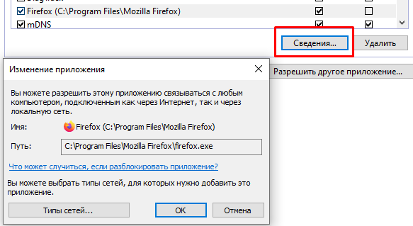 Если нужно заблокировать доступ к сети приложению, программе или сервису, выберите, а затем снимите с него флажок (для блокировки доступа к любой сети) или один из флажков справа (частная или публичная), в зависимости от типа сети.