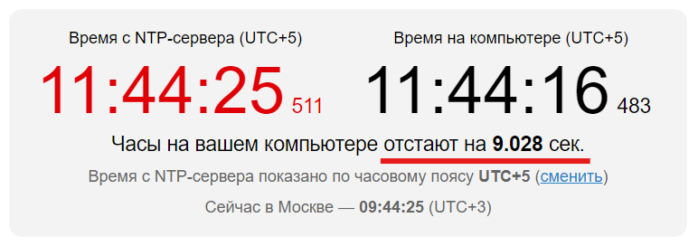 Текущее отклонение от эталонного времени можно посмотреть перейдя на сайт NTP SERVERS (откройте его на ВМ):