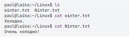 Имена файлов в Linux (или в любой системе Unix) являются регистрозависимыми. Это означает, что имена FILE1 и file1 не являются равноценными, а путь к файлу /etc/hosts отличен от пути к файлу /etc/Hosts (последнего файла не должно существовать в файловой системе типичного компьютера, работающего под управлением Linux).