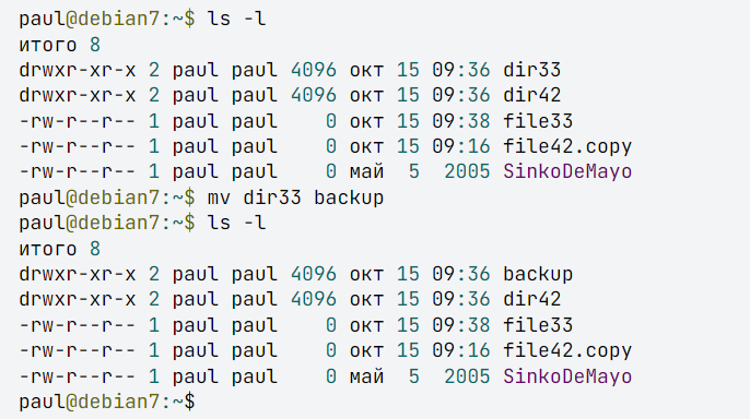 Утилита mv используется для переименования файлов или для перемещения файлов в другие директории.