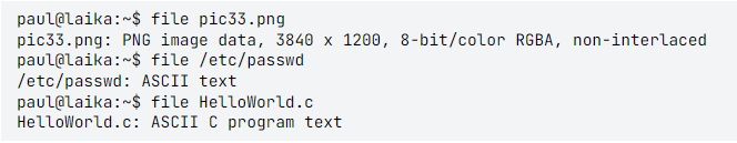 Утилита file предназначена для определения типа файла. В Linux для определения типов файлов не используются их расширения. Для инструментов с интерфейсом командной строки абсолютно безразлично, оканчивается ли имя файла на .txt или на .pdf. Исполняя обязанности системного администратора, вы должны использовать команду file для установления типа интересующего вас файла. Ниже приведено несколько примеров использования данной утилиты при работе с типичной системой Linux.