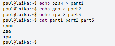 Имя утилиты cat является сокращенной формой слова concatenate (объединить). Одним из наиболее простых сценариев использования данной утилиты является объединение файлов в рамках файла большего объема (или полного файла).
