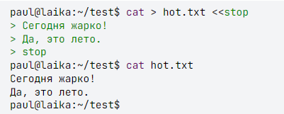 Вы можете установить специальный маркер окончания файла для утилиты cat с помощью параметра << таким образом, как показано в примере. Данная конструкция называется локальной директивой (here directive) и позволяет завершать работу процесса cat.