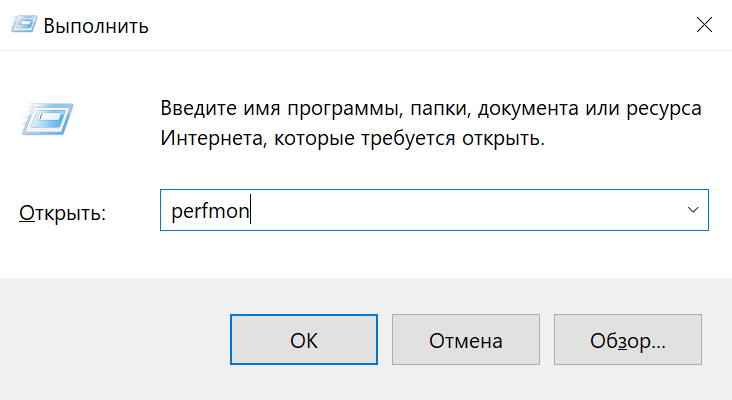 Чтобы запустить системный монитор в Windows, необходимо нажать клавиши Windows + R и ввести perfmon в окно «Выполнить».