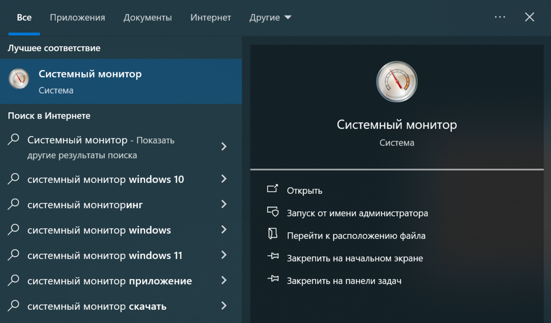 Это лишь малая часть вариантов запуска системного монитора в Windows…