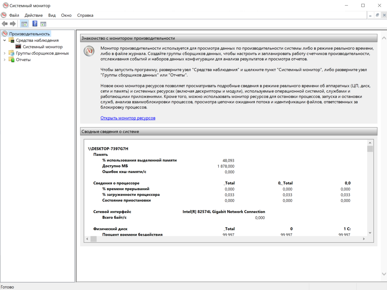 Системный монитор предоставляет больше информации о работе вашей системы, чем любое другое отдельно взятое средство. Он включает в себя сотни основных и расширенных счетчиков для различных объектов.