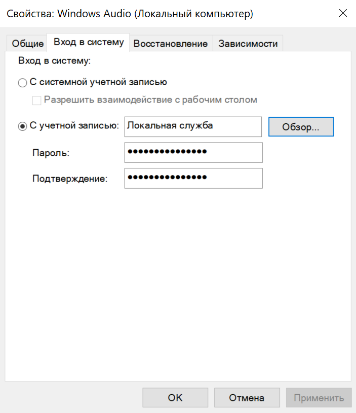 «Разрешить взаимодействие с рабочим столом». По умолчанию службам не разрешен доступ к вашему рабочему столу, если этот флажок не установлен. На практике этот флажок действительно существует только для крайне устаревших служб, например на Windows 8.