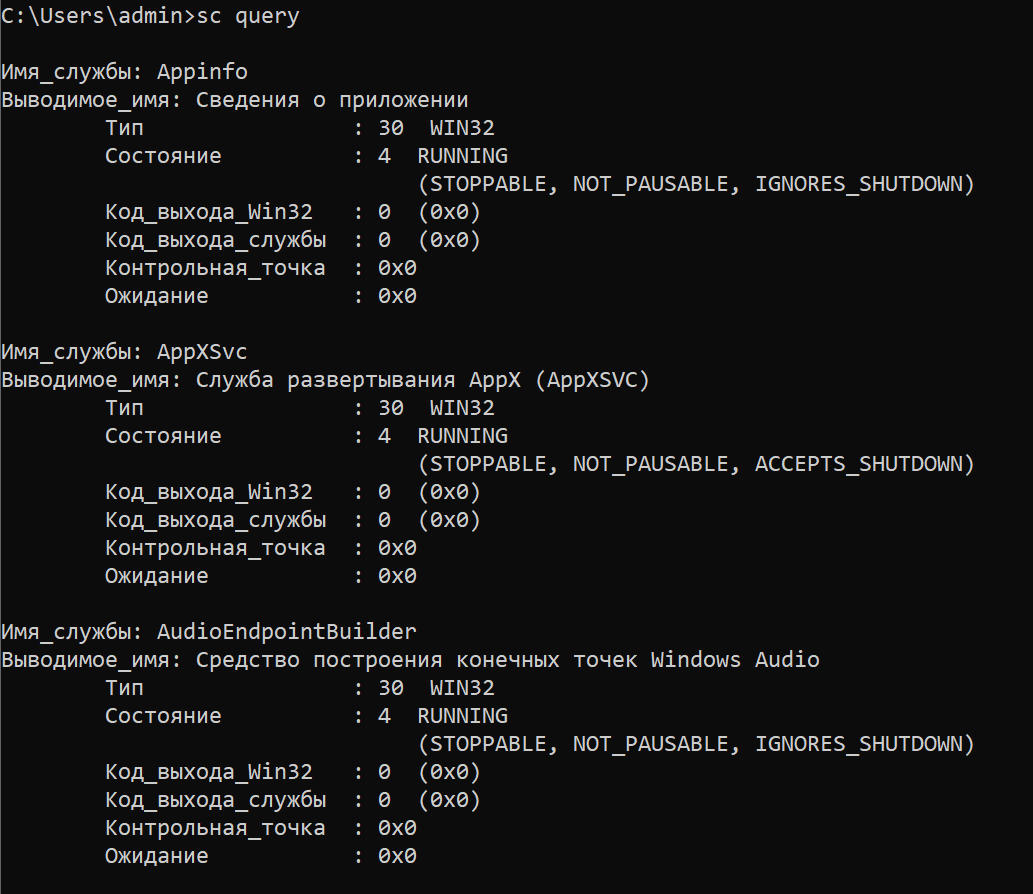 Чтобы запросить статус всех служб откройте CMD и выполните: sc query