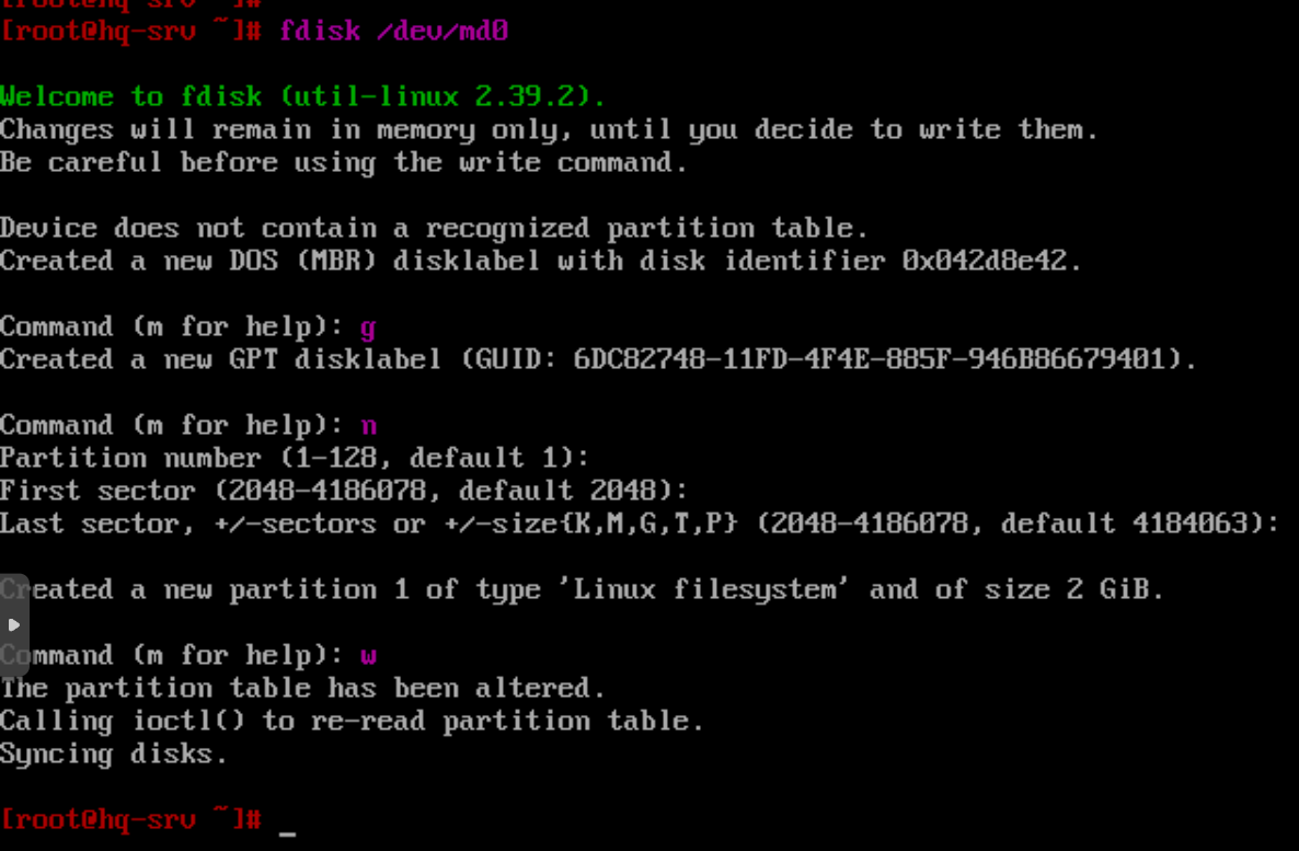 mdadm в альте имеет проблему - если не создать конфиг mdadm.conf, то имя рейда (в нашем случае md0) после перезагрузки пропадет.