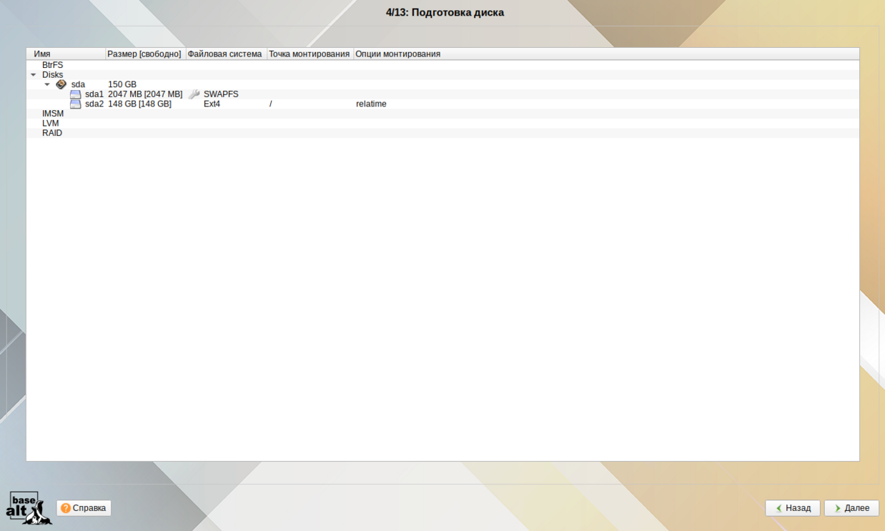 Альт Сервер Виртуализации предоставляет 4 основных типа установки: