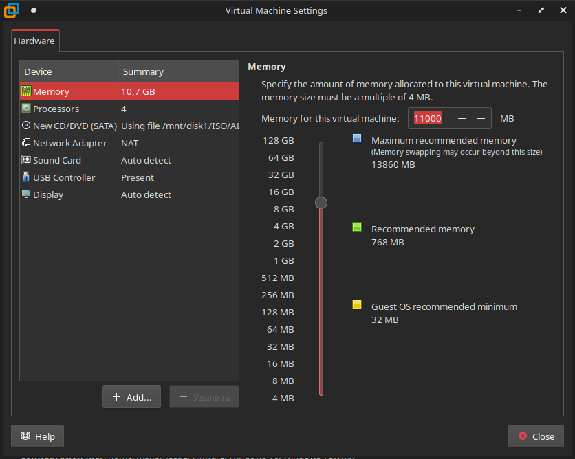 2. Приведите настройки ВМ к следующему виду и запустите ALT-V: